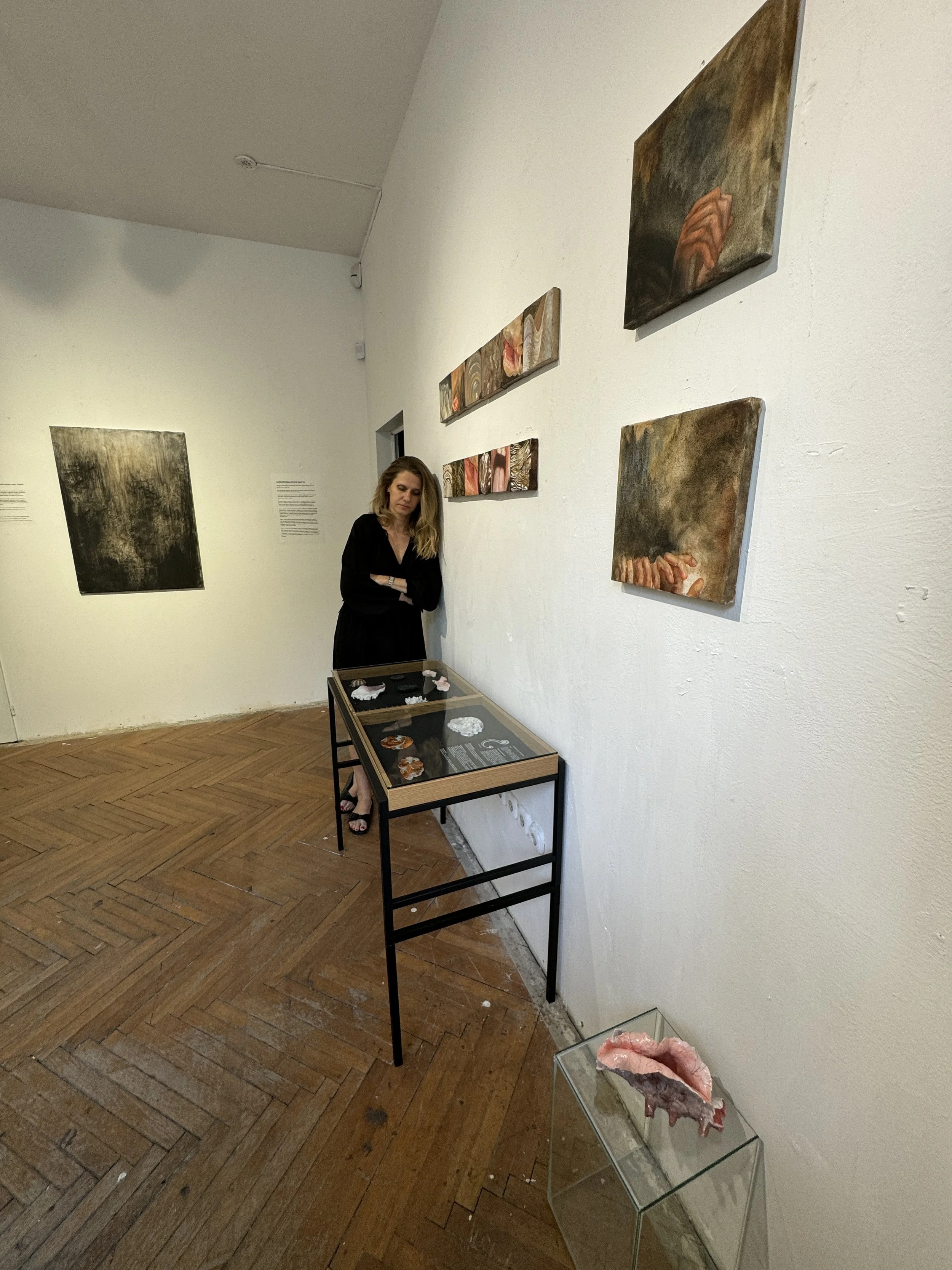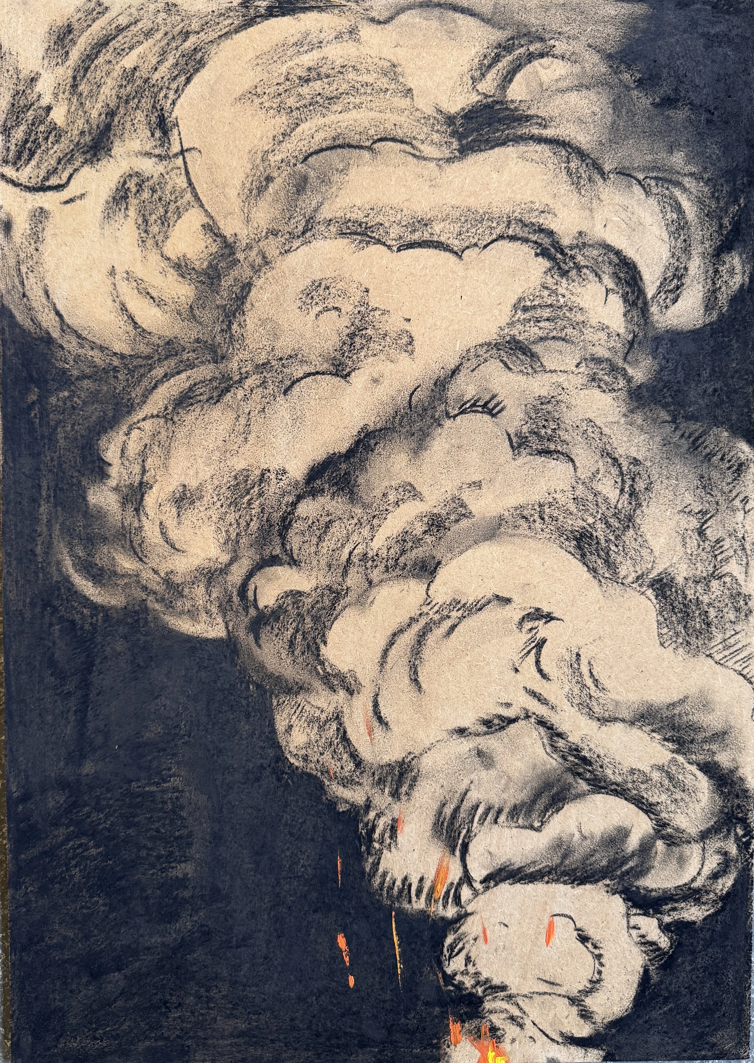 These works are Oleksandra`s reflection on the ongoing global crises. The artist uses images of smoke, dust clouds, and explosions saturating todays news media.