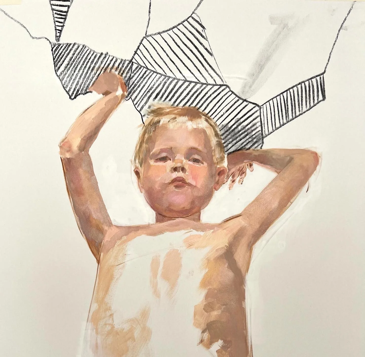 Sleeping self-portraits, sleeping babies and children, partially depicted bodies are united by the theme of tranquility and stillness in the latest works.